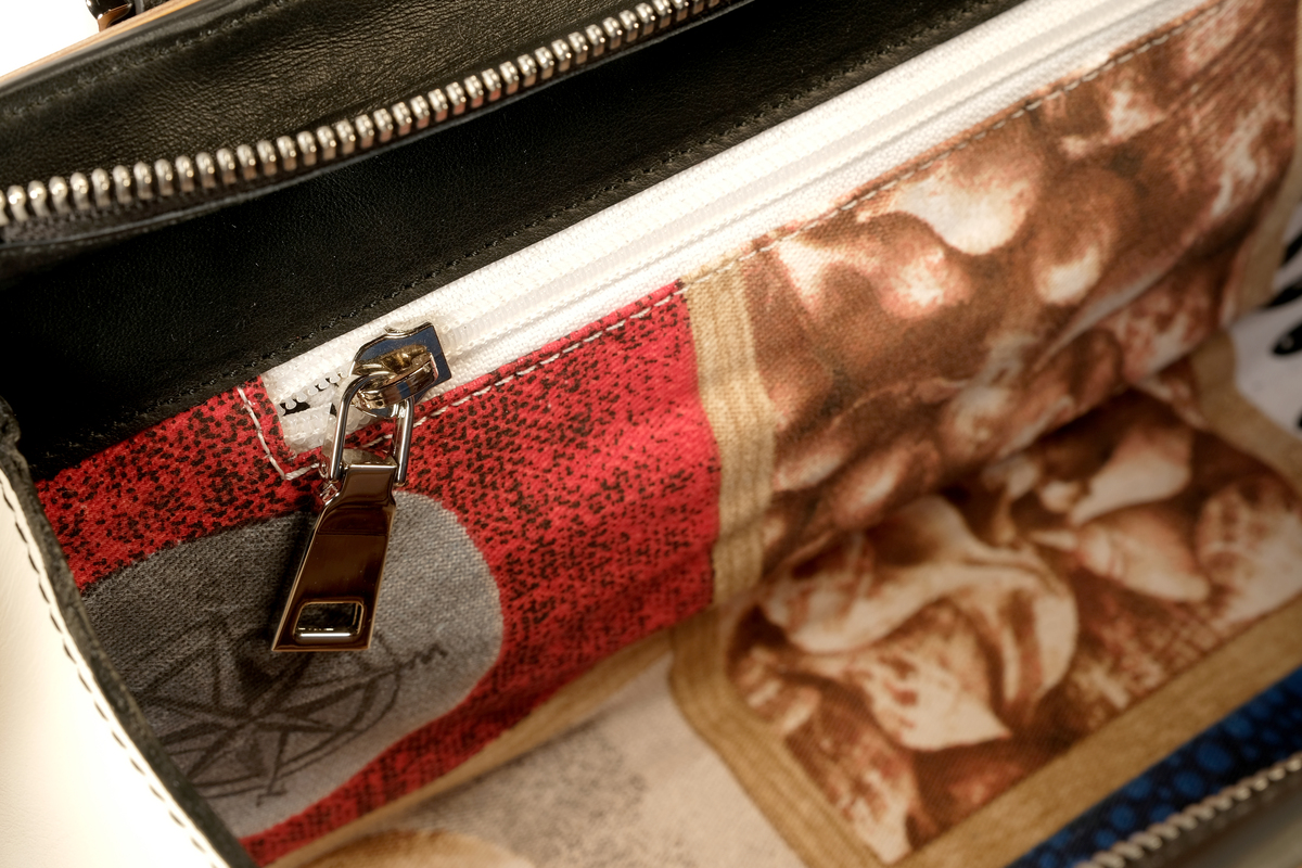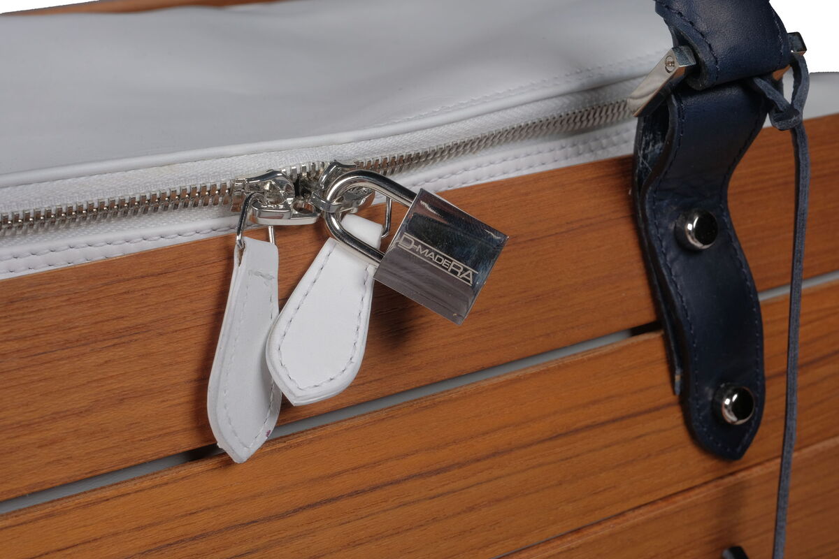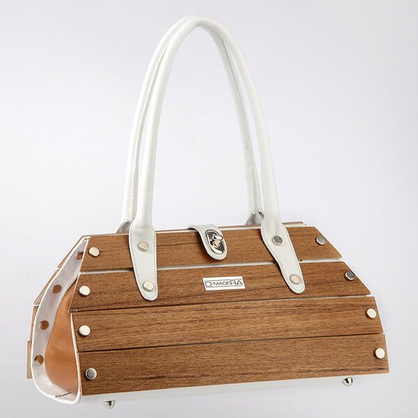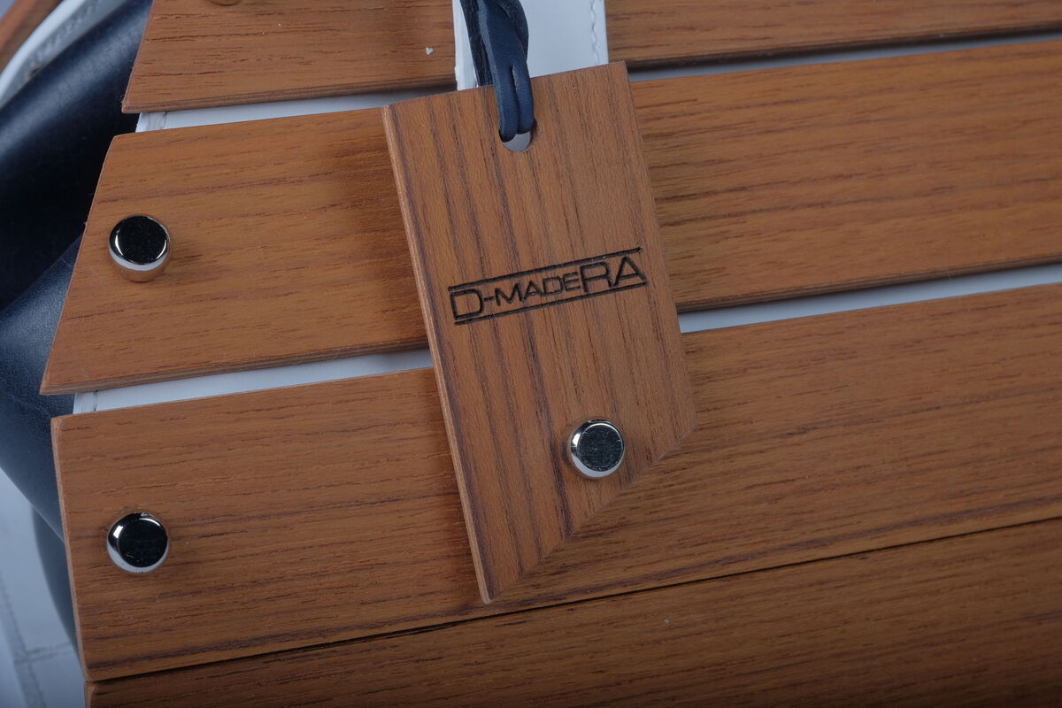 (teak trattato ad olio, esterno in pelle, interni in raso/cotone canapa. Concia vegetale per la versione cuoio.) [I rivestimenti interni possono subire variazioni senza alcun preavviso]